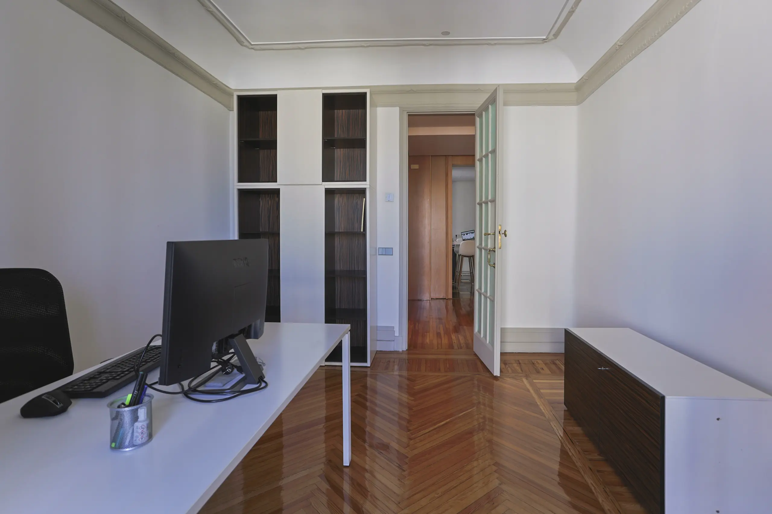 Haz de tus reuniones una experiencia excepcional en esta sala moderna y luminosa, situada en el corazón de Madrid. Perfecta para encuentros profesionales o entrevistas. Cuenta con una preciosa galería de color verde con amplios ventanales de forja artesanal con suelo hidráulico original.